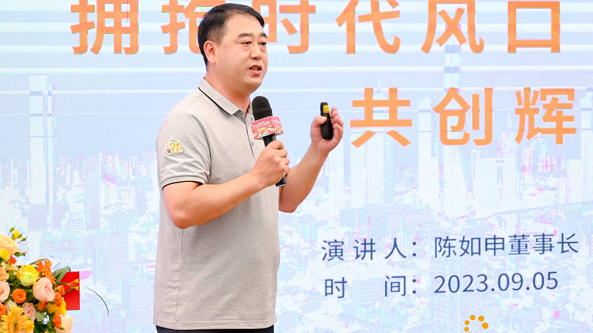 在庆典仪式上,陈如申董事长发表了以“拥抱时代风口,共创辉煌未来”为主题的重要致辞。